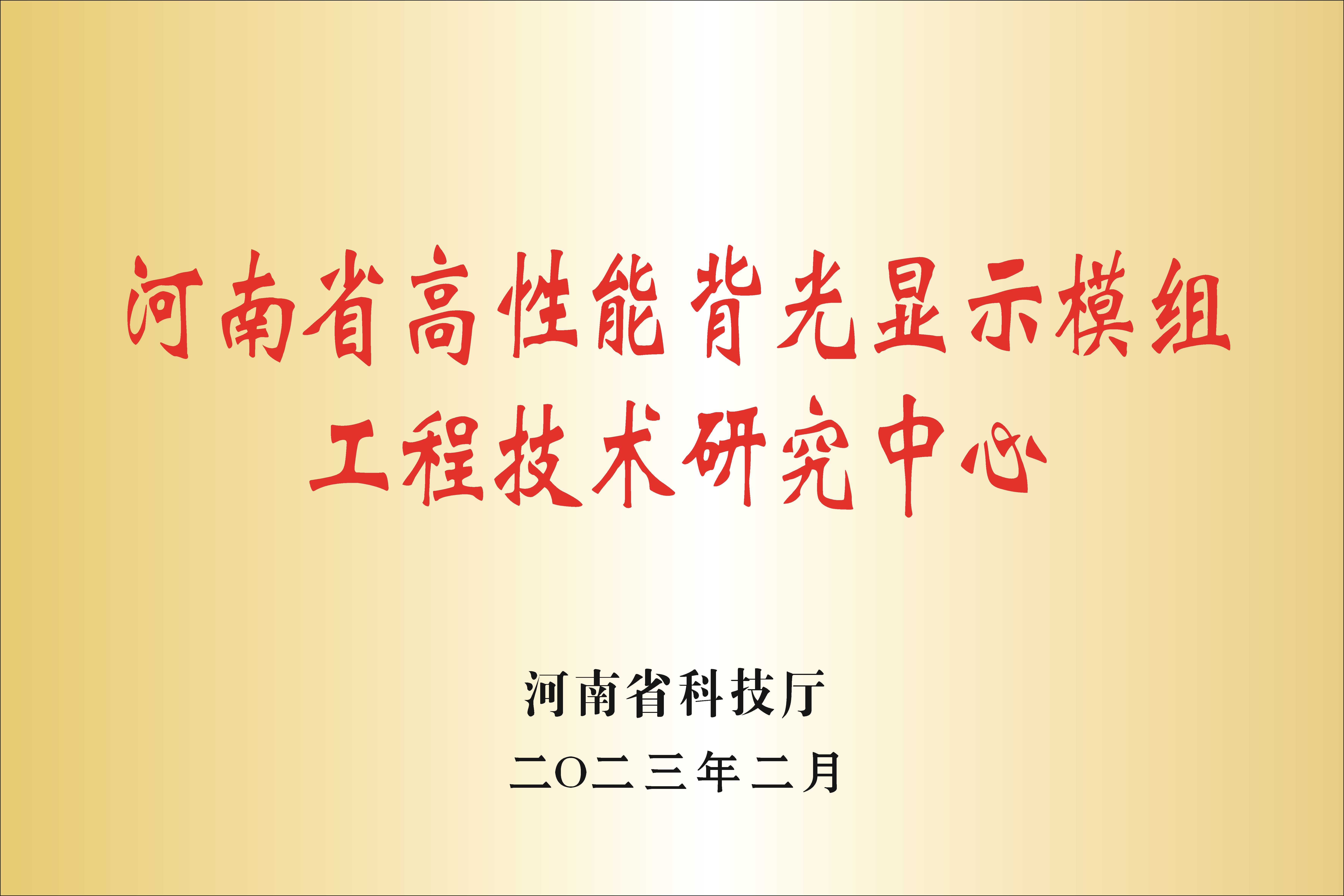 河南省高性能背光显示模组工程技术研究中心
